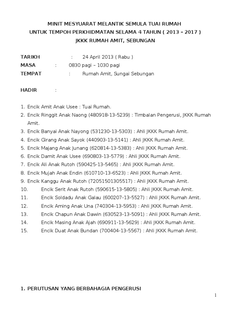 Related : Contoh Minit Mesyuarat Jkkk : Minit mesyuarat jkkk kampung bako hilir 93050 kuching, sarawak bil 01 /11 tarikh masa tempat kehadiran..