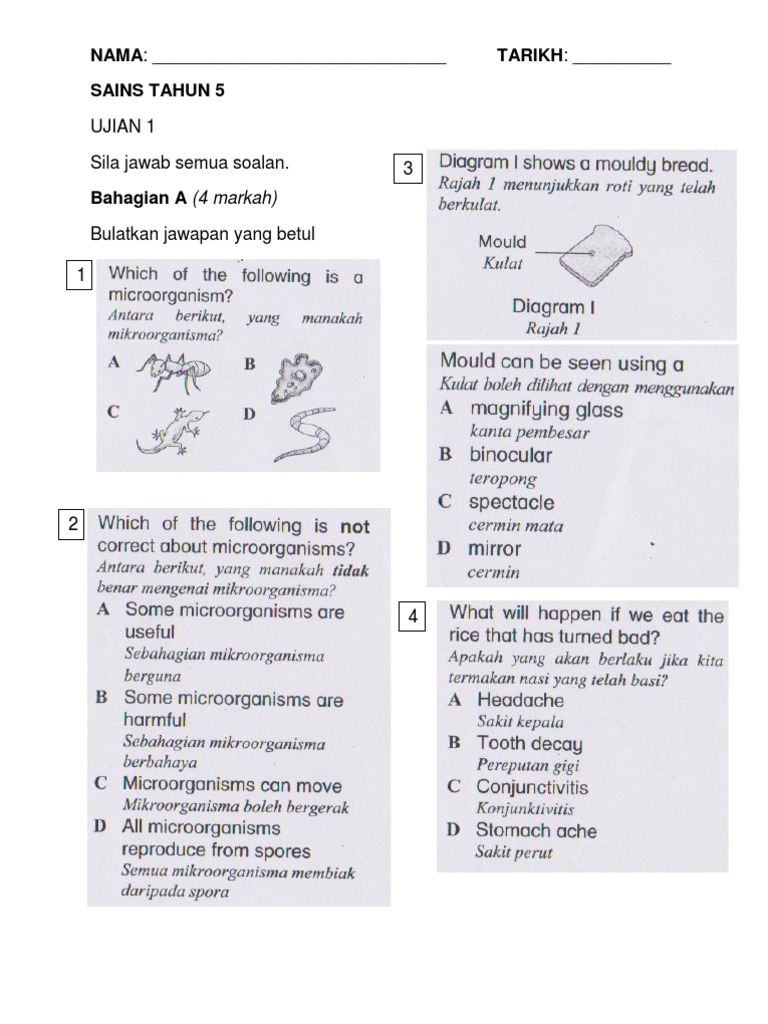 Related : Ujian Sains Tahun 5 / 20 soalan aneka pilihan 2 soalan struktur..
