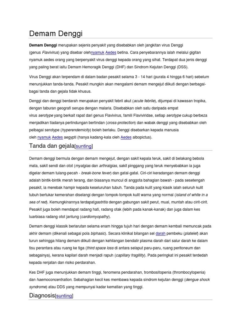 Demam Denggi from imgv2-1-f.scribdassets.com Demam denggi masih memberi kesan kepada ramai orang di indonesia. Berikut ini gejala demam denggi. Penerangan & fakta tentang demam denggi, 2. Jumlah kes serta kematian demam denggi dalam tempoh januari hingga 12 jun tahun ini menunjukkan pengurangan sebanyak 75 peratus dan 91 peratus berbanding tempoh sama tahun lepas. Apabila wanita hamil mengalami demam denggi, kesan buruk tidak hanya dirasai sendiri. Salah satu jenis demam denggi yang paling bahaya adalah demam denggi berdarah. Demam denggi akan menjadi lebih berbahaya jika berlaku pada wanita yang mengandung. Demam denggi terdiri daripada demam denggi biasa atau demam denggi berdarah yang boleh membawa maut.