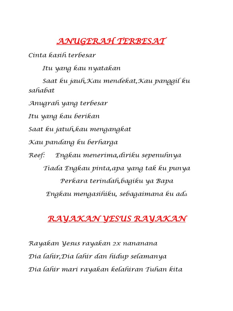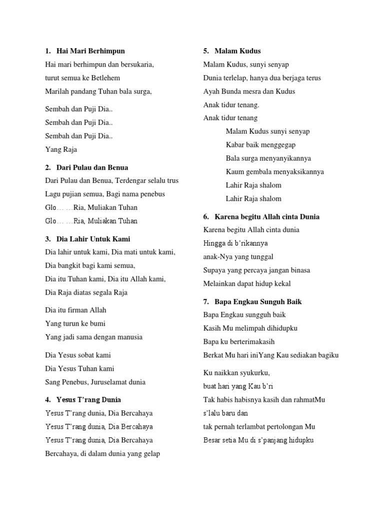 Lirik Lagu Rohani Klzzz3wkzglg from idoc.pub Dia lahir untuk kami, dia mati untuk kami, dia bangkit bagi kami semua, dia itu tuhan kami, dia itu allah kami, dia raja di atas s'gala raja. Dia lahir untuk kami, dia mati untuk kami, dia bangkit bagi kami semua, dia itu tuhan kami, dia itu allah kami, dia raja di atas s'gala raja. Lirik dia lahir untuk kami oleh greta sihombing. D g g7 untuk kami semua. Dia raja di atas segala raja. Yang jadi sama dengan manusia. Salah satunya versi victor hutabarat dalam album natal bersama victor hutabarat, vol. C c7 dia itu tuhan kami f c dia itu allah kami am dia raja dm g c c7 di atas s'gala raja.